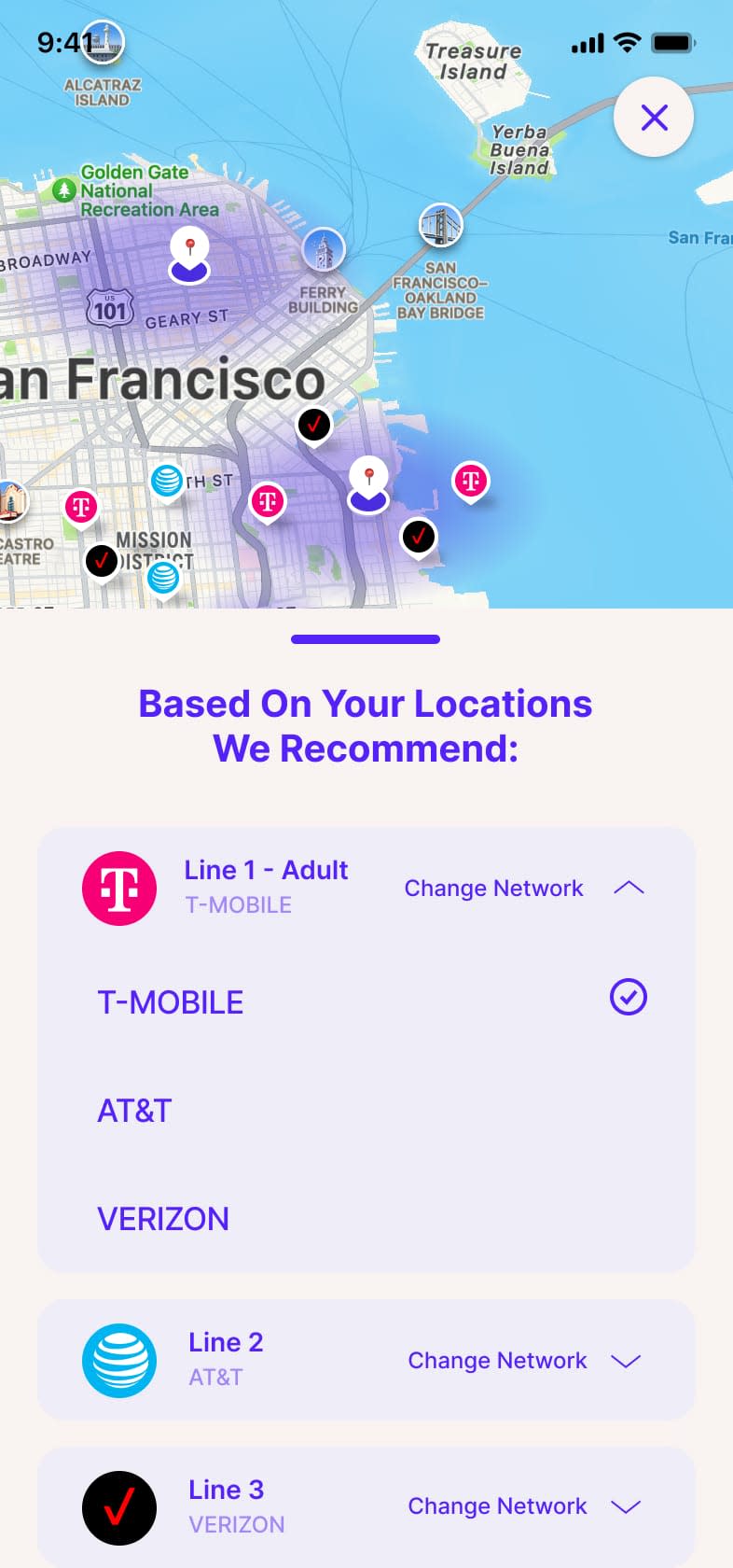 Access AT&T, T-Mobile, and Verizon networks - choose the best connection for each family member.